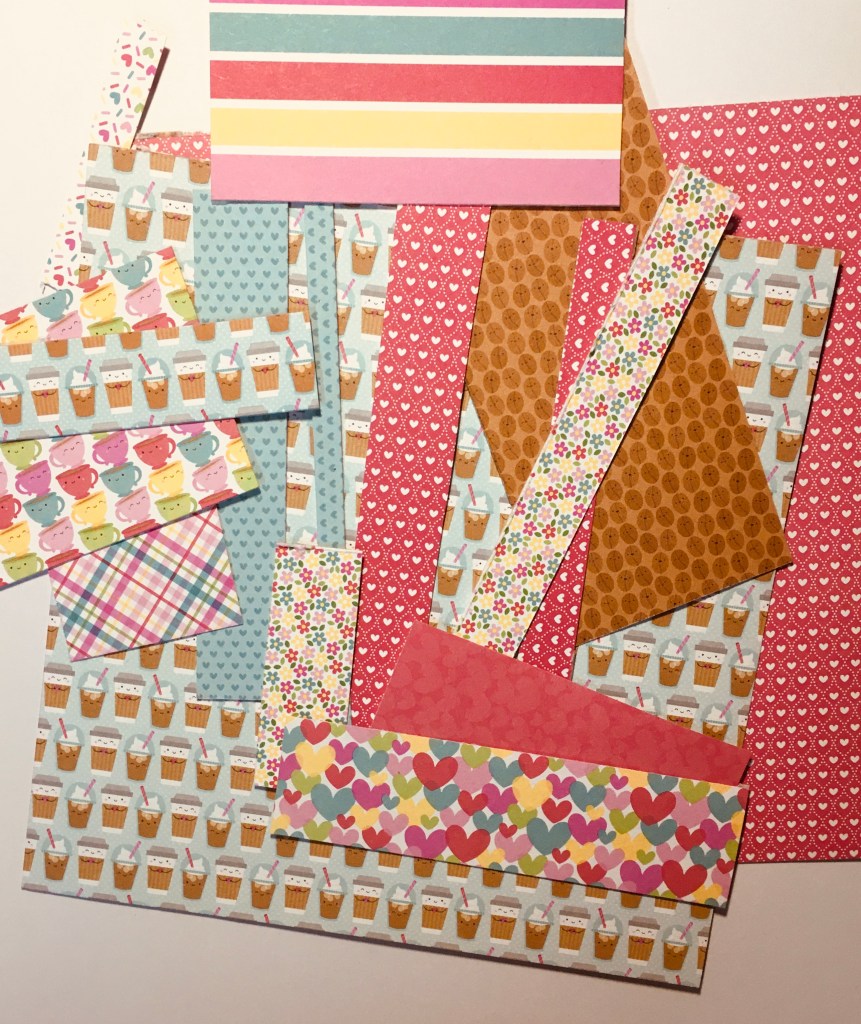 I thought the paper I pulled would last four weeks, but what you see in the photo above is what’s left. Two full 6×6 sheets and a lot of little scraps. I plan using the smallest pieces I can, but I’m not being too precious about throwing away tiny scraps. This has been a really successful endeavor and I think having a week or two off to reset and work on other things will be good. So there will be one more June Stash Bash post next week and then I’ll be done with this “mini kit”.