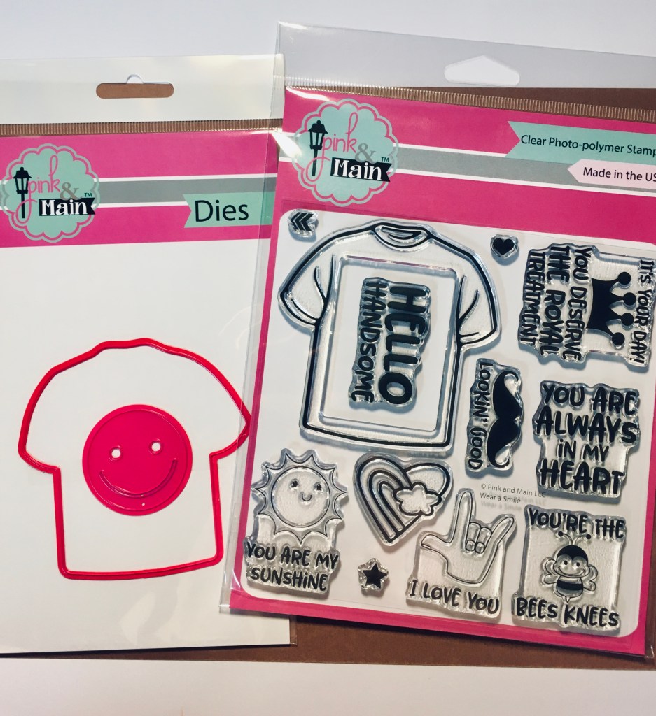 I received Pink & Main’s May 2020 card kit and was intrigued. I’ve been getting the card kits since March of 2020 and had liked them, but this one spoke to me in a surprising way. It was specifically geared toward masculine style cards and featured a t-shirt stamp and die and some adorable sentiments. The papers were fun and the overall vibe reminded me of being a kid in the 70s and early 80s.