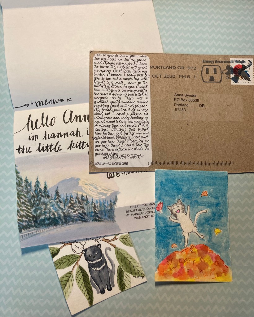 Once I narrowed it down, I was able to create the cards you see above. I was excited to send them out and to receive the cards from the artists who got my name. And they were well worth it!