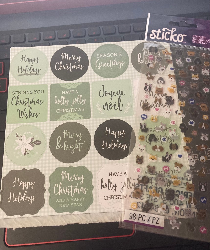 - A 2.75×6.25 sheet of Sticko Tiny Dog stickers. Simon Says Stamp lists them at $1.99. EMBELLISHMENT SUBTOTAL: $8.98