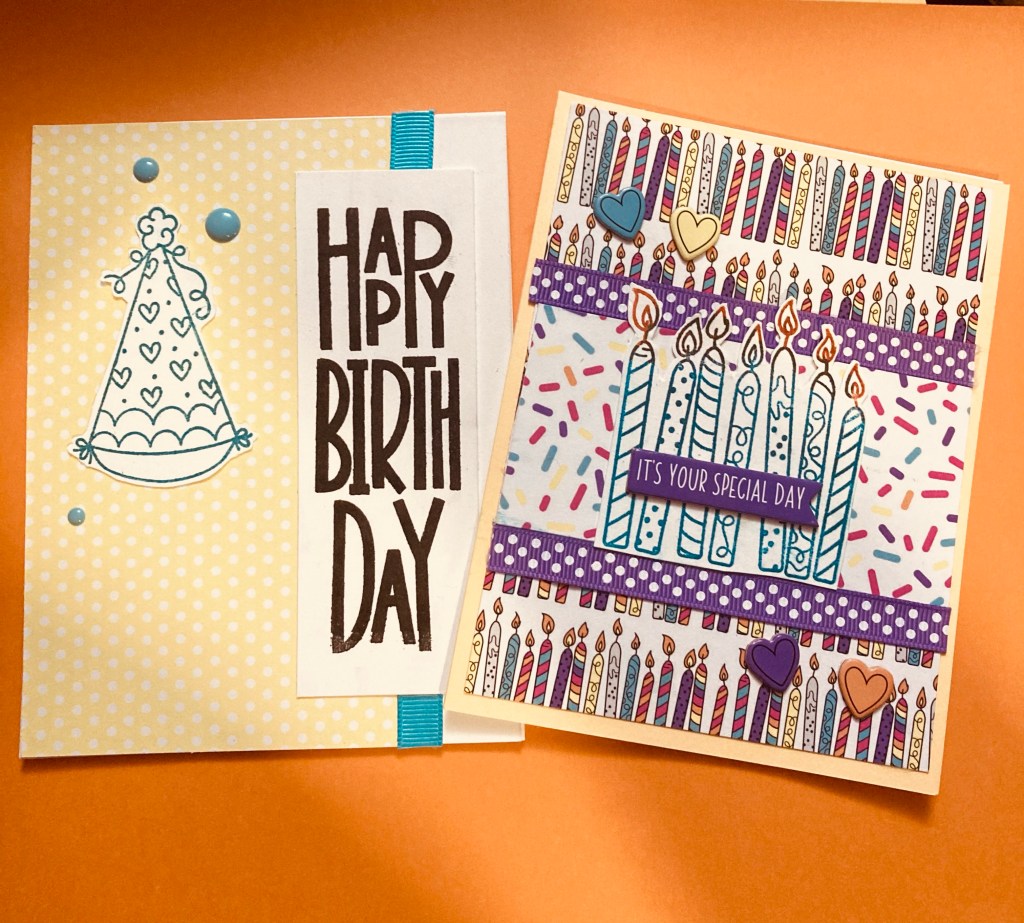 I always need birthday cards so this was a perfect excuse to make some and include some ribbon.