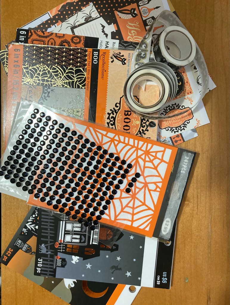 I decided to go back to one of my earlier kinds of posts where I was trying to put together my own “kits,” inspired by Grace Tolman on her YouTube channel. I’m not as disciplined as Grace to only use things I already own and not bring anything new into the mix. No, I like to buy stuff (even though I do NOT need it) and incorporate it into the things I already own. In my defense, this year I did not buy any new Halloween paper and I didn’t buy any Halloween special limited edition card kits. I did, however, buy a bunch of the ephemera and die cuts that Michaels had for Halloween as well as some new dies. Growth is a process!