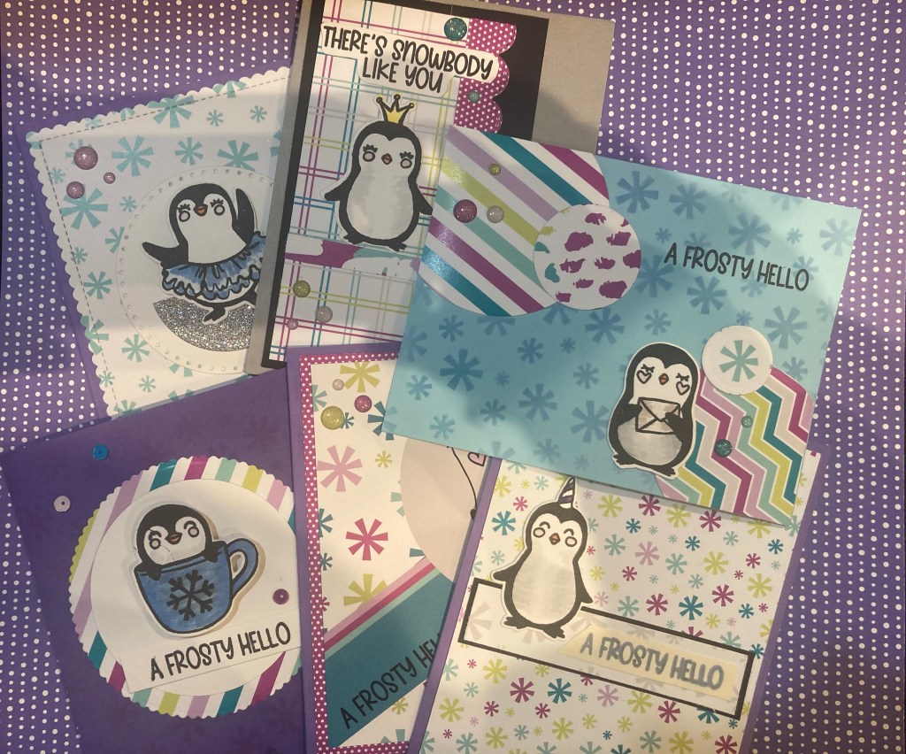 This is it! The final Smash Our Stash of the year. December was again up to us to choose and I decided Winter themed cards using the December 2021 Pink & Main Crafty Courtyard kit. It has penguins!